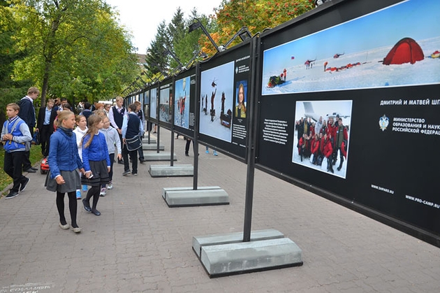 4 сентября 2015 года в центре Новосибирска отрылась уличная фотовыставка, посвящённая VIII российской молодёжной экспедиции «На лыжах – к Северному полюсу!». Выставку в Первомайском сквере при большом стечении публики открыли вице-губернатор Виктор Шевченко, мэр города Анатолий Локоть и полярный путешественник Дмитрий Шпаро. В апреле 2015 года при поддержке Министерства образования и науки Российской Федерации была проведена VIII российская молодёжная экспедиция «На лыжах – к Северному полюсу!». Участниками путешествия стали победители и призёры всероссийских школьных олимпиад 16-18 лет из семи российских регионов. Уличная фотовыставка, посвящённая полярным путешествиям российских подростков, в сентябре-декабре будет демонстрироваться в 7 российских городах, чьи юные представители стали участниками экспедиции 2015 года... Фото сайта минобрнауки.рф