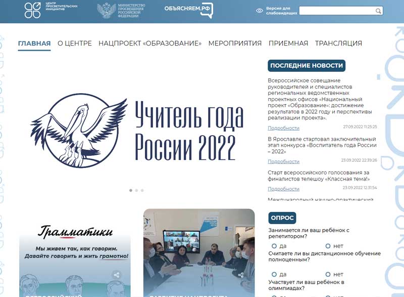 Общественная некоммерческая организация, осуществляющая просветительскую работу в регионах, формирование интеллектуального контента, организацию и проведение бесплатных лекций, а также разнообразных мероприятий в сфере воспитания, социальной поддержки и социальной защиты обучающихся и воспитанников образовательных учреждений и людей пожилого возраста.